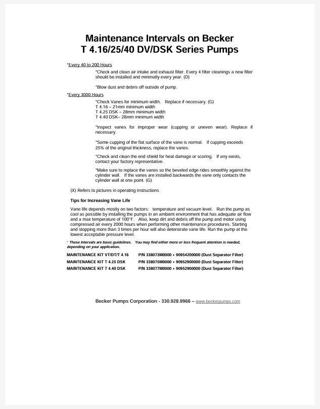 • Check/clean the intake and exhaust filters every 40 to 200 hours.