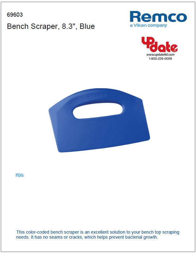 This color-coded bench scraper is a superb choice for your bench top scraping tasks. Its seamless and crack-free design helps inhibit bacterial growth.