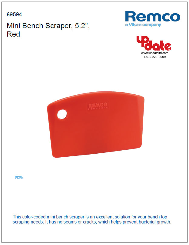 This mini bench scraper, color-coded for convenience, is perfect for all your benchtop scraping tasks. Its seamless and crack-free design helps inhibit bacterial buildup.