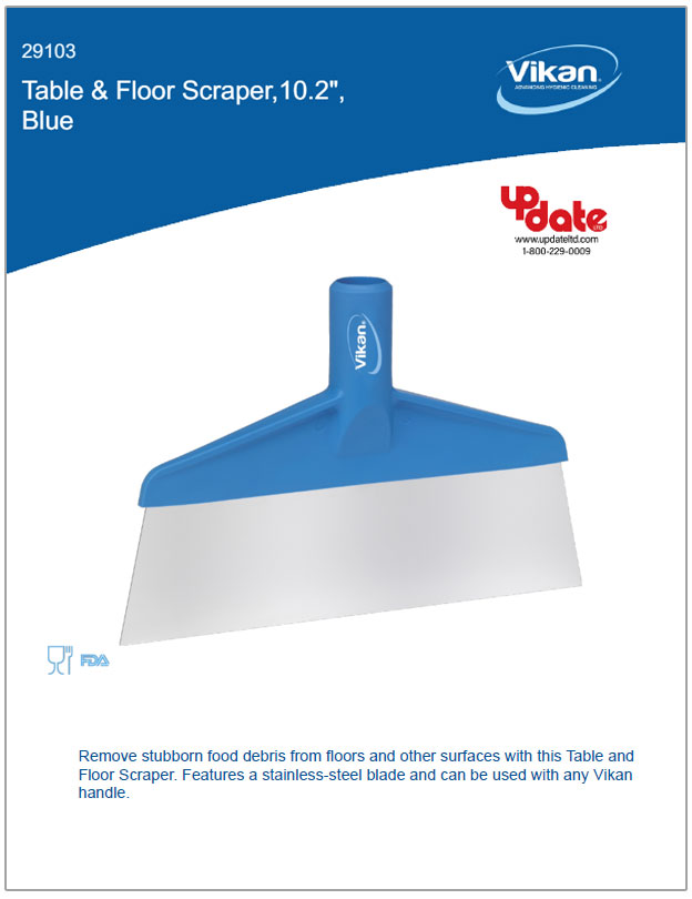 Eliminate tough food residue from floors and surfaces using this Table and Floor Scraper. It comes with a stainless-steel blade and is compatible with all Vikan handles.