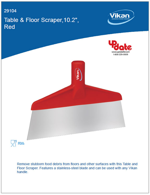 Eliminate tough food residue from floors and surfaces using this Table and Floor Scraper. It comes with a stainless-steel blade and is compatible with all Vikan handles.