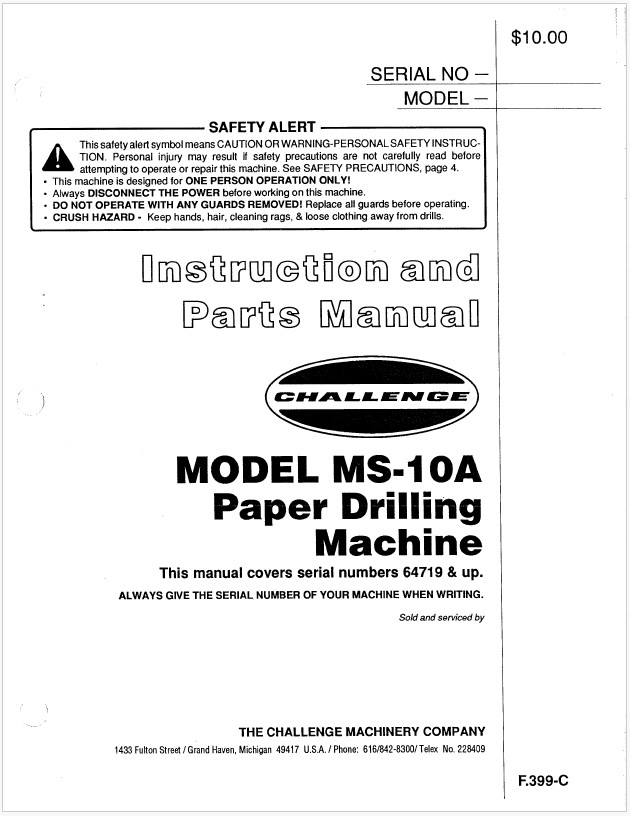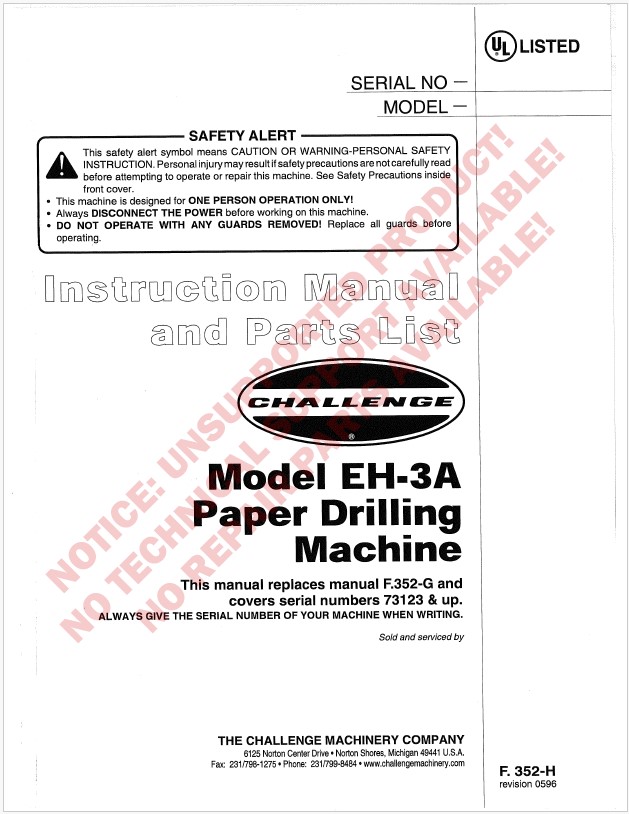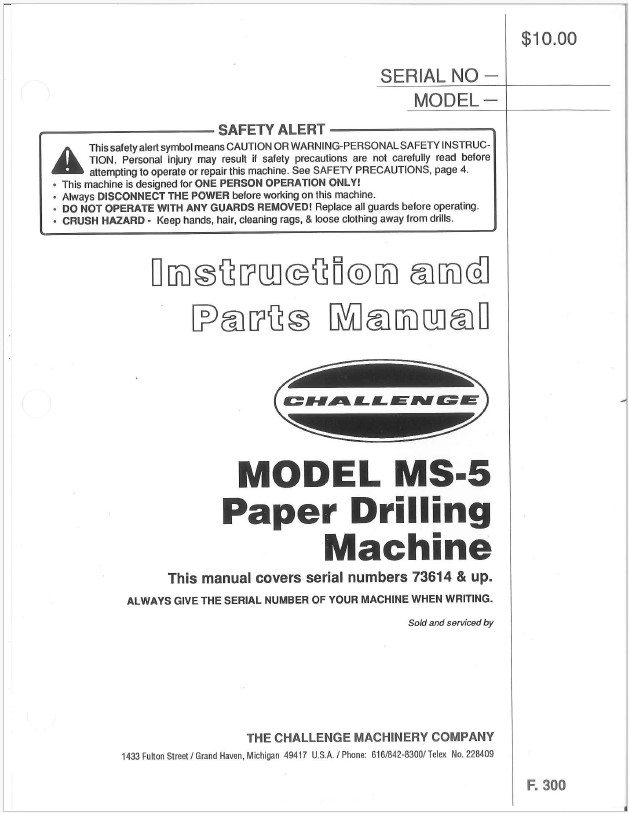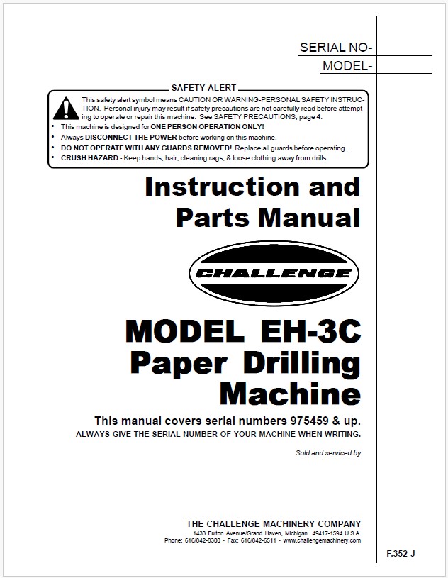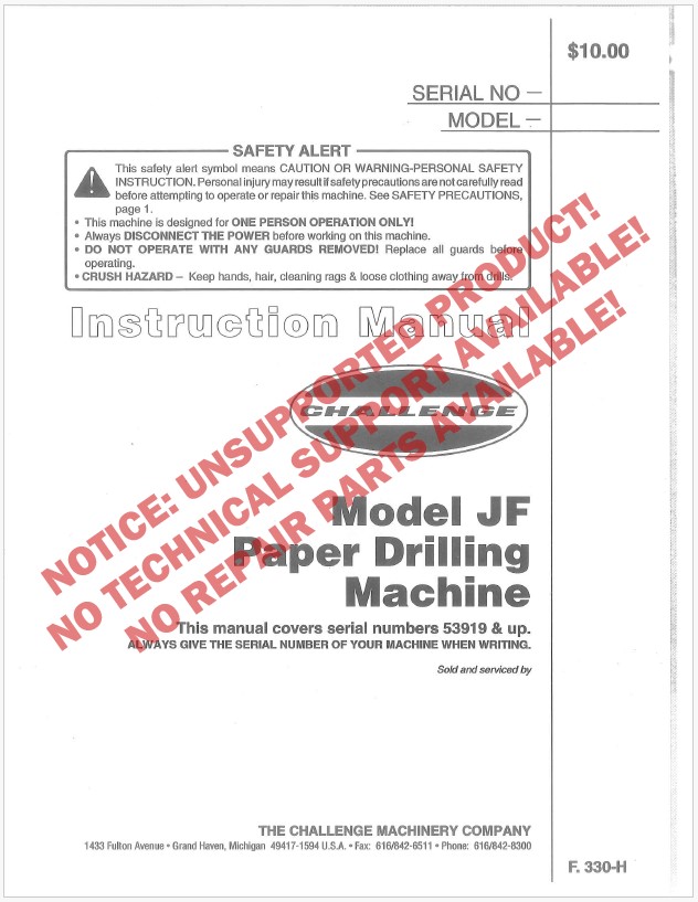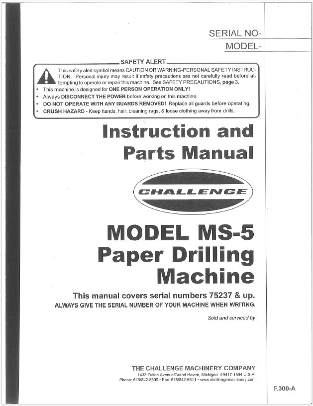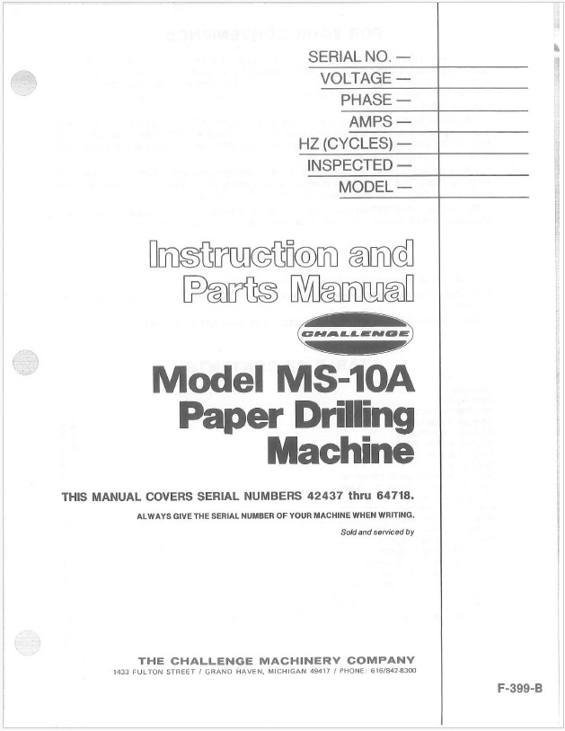 Browse the links below to view or download parts manuals for Challenge paper drill machines. We reference model numbers, manufacture dates, and serial numbers for you to find the manual that matches your Challenge drill machine.