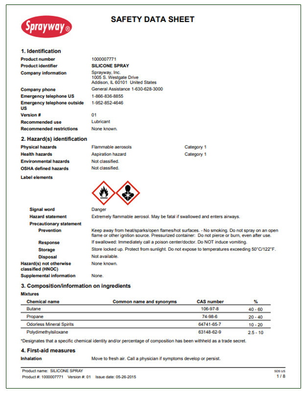 Sprayway SW-945 Silicone Spray 11oz Aerosol Sprayway SW-945 Silicone Spray 11oz Aerosol Sprayway Part Number: SILICONE 945 List of volume pricing for product Sprayway SW-945 Silicone Spray 11oz Aerosol. 1 Sale Price $14.35 /EACH 12 Sale Price $13.63 /EACH Qty EACH Add to Cart