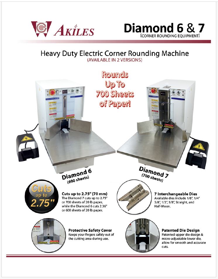 • Detachable Pressing Bar holds paper in place during the rounding process and also detaches for easy replacement of knives (Diamond 7 only).