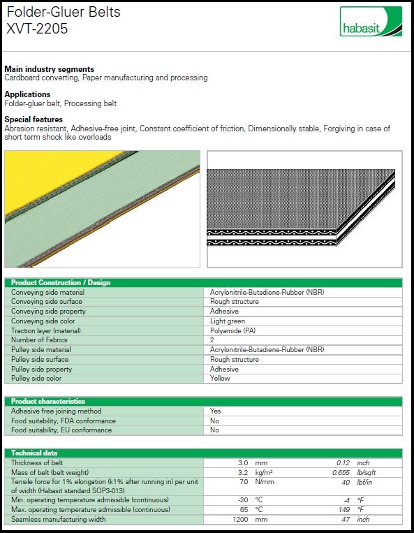 XVT-2205 Polyamide Folder-Gluer Belt 1/2"