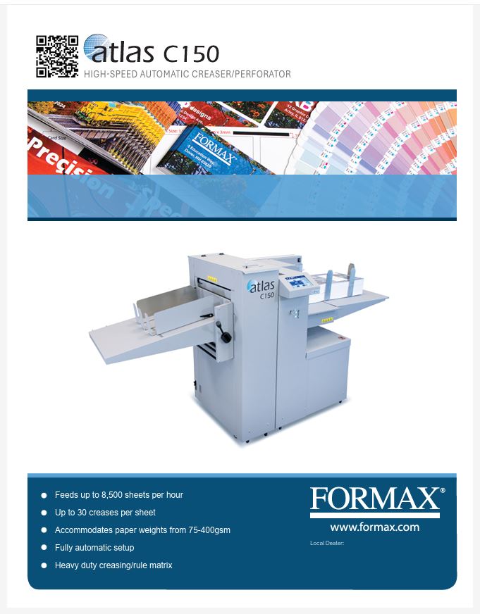 The Atlas C150 is a high speed automatic Creaser/Perforator that offers professional-grade results