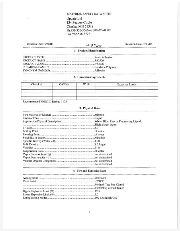 UD900 Fugitive Liquid Adhesive 1 Gal.