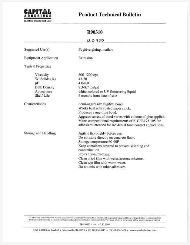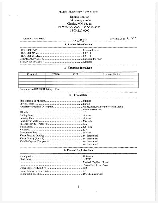 UD950 Fugitive Liquid Adhesive 5 Gal.