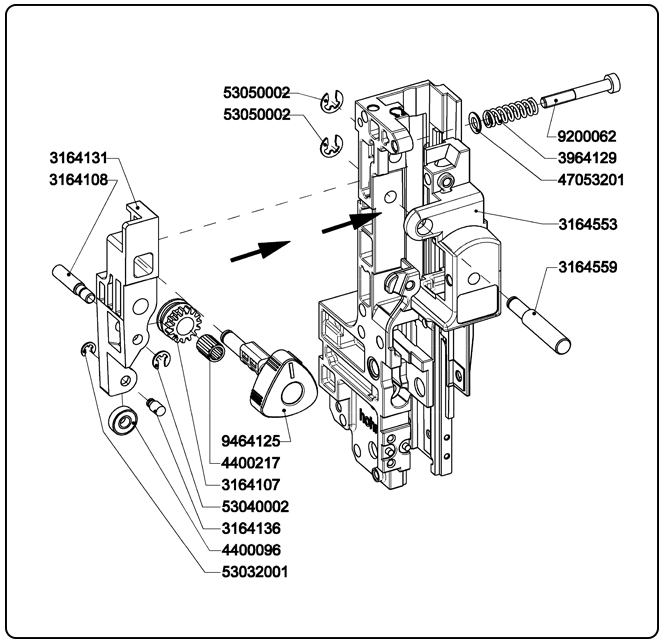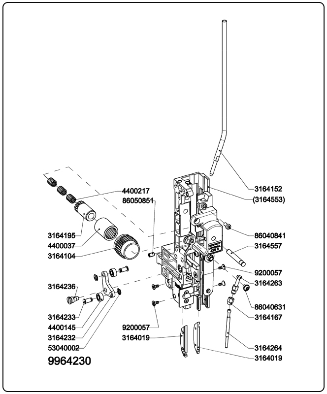 This stitcher head includes a clincher assembly, wire guide, and tool kit.