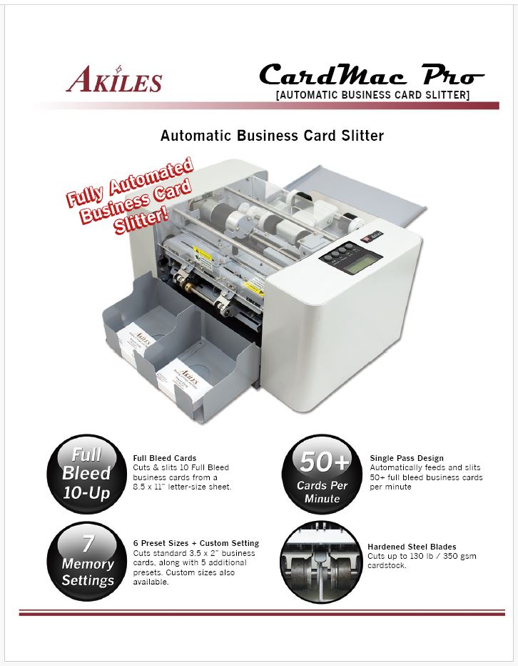 Save time and money with the Akiles CardMac Pro Business Card Slitter! Quickly create your own custom business cards at a low cost and without leaving the comfort of your home office.