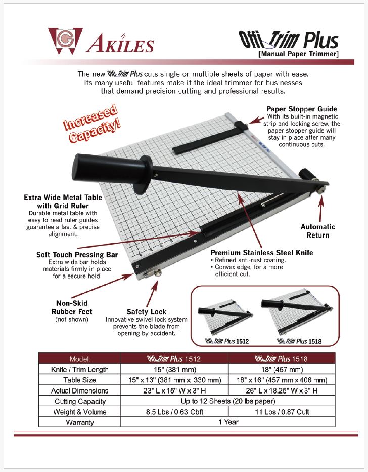 Akiles OffTrim Plus 15" Manual Paper Trimmer