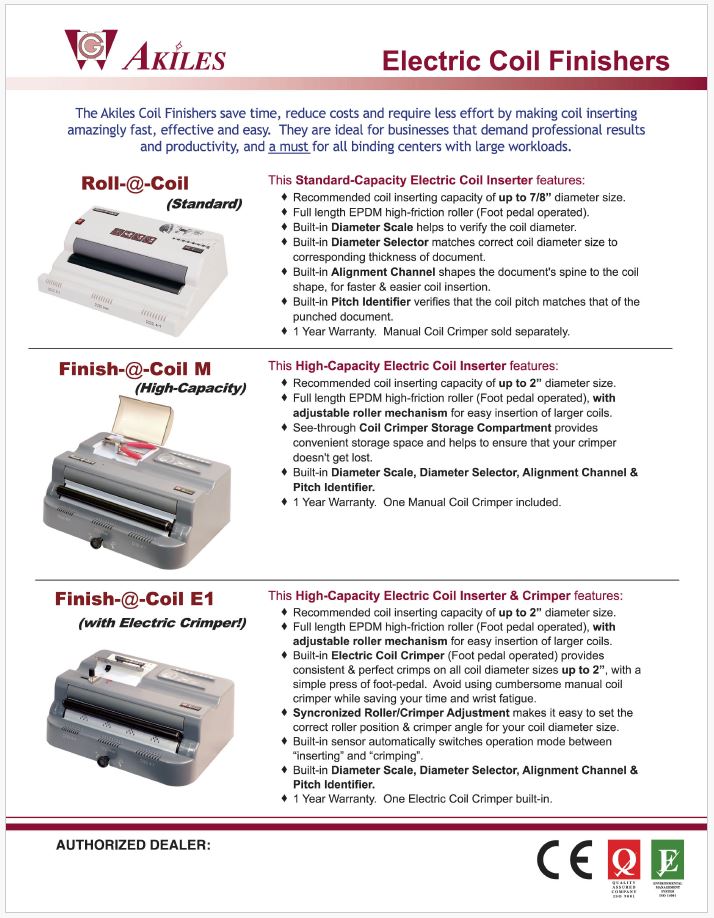 Featuring adjustable full-size rollers, the Akiles Finish@Coil M, a robust electric coil inserter, streamlines the coil inserting process, making it quick and effortless even for oversized diameters. Perfect for operators seeking both versatility and high productivity, this machine is essential for any binding center handling significant volumes.
