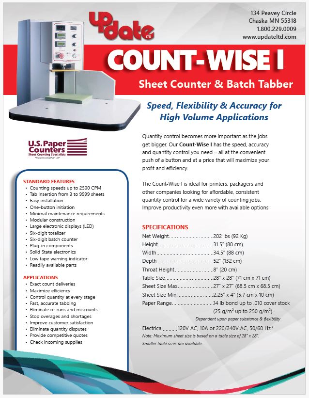 Quantity control becomes more important as the jobs get bigger. Our Countwise 1 has the speed, accuracy and quantity control you need - all at the convenient push of a button. The Countwise 1 is ideal for printers and packagers looking for affordable, consistent quantity control.