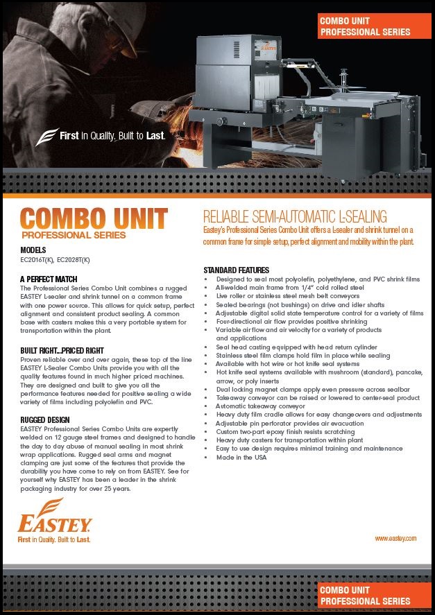 Proven reliable over and over again, these top-of-the-line EASTEY L-Sealer Combo Units provide you with all the quality features found in much higher-priced machines. They are designed and built to give you all the performance features needed for positive sealing a wide variety of films including polyolefin and PVC.