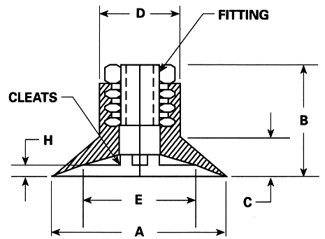 Blue Vinyl Vacuum Cup 1.15H x 1.51W x 1/4 NPT Male Style E