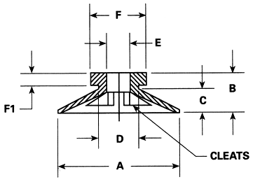Blue Vinyl Vacuum Cup .50 H x 1.67 W x .25 Id With Cleats Style A